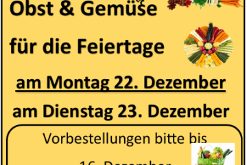 Montag – 22. Dezember 2025 & Dienstag – 23. Dezember 2025 Vorbestellungen bitte bis 16. Dezember 2025 Gerne telefonisch, per Mail oder einfach im Laden vorbeibringen.09104-2241 / bestellung@eckardts-gartenmarkt.de